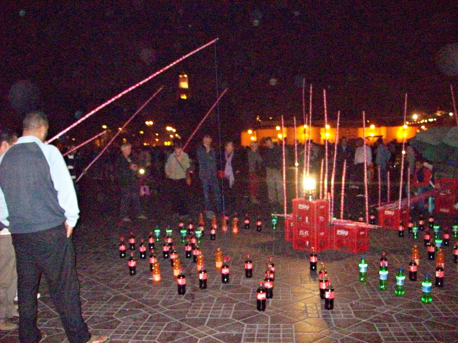 Pesca de cocacolas en la plaza Jemaa-el-Fnaa